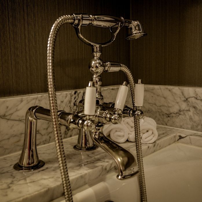 Luksusową łazienkę możesz oprzeć również na baterii wannowej ściennej. Tu również powinieneś dobrać wariant w zależności od stylu wybranej wanny. Jeżeli wybrałeś luksusową wannę stalową w nowoczesnej formie, to prosta, błyszcząca bateria sprawdzi się tu idealnie.
