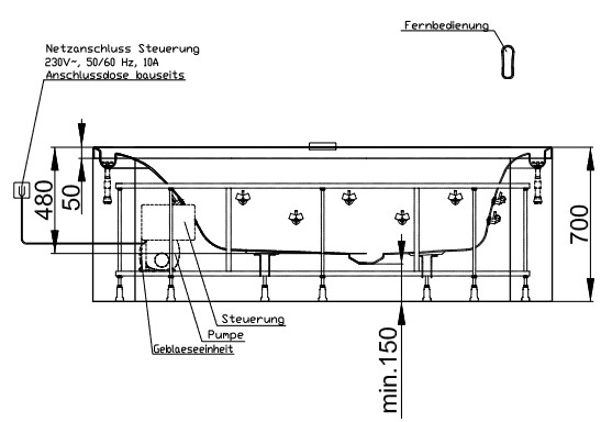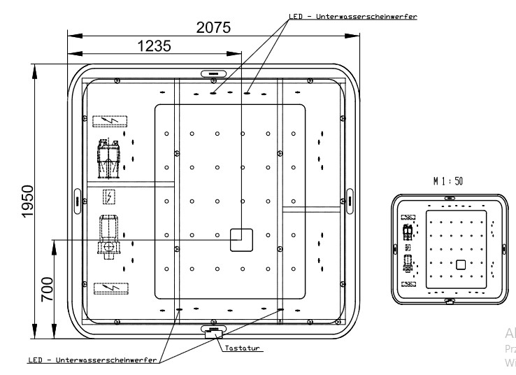HOESCH Ergo+ Wanna akrylowa kwadratowa wolnostojąca z obudową szklaną w kolorze białym z dedykowanym systemem hydromasażu 2075x1950 biały/chrom 6444S.010305550