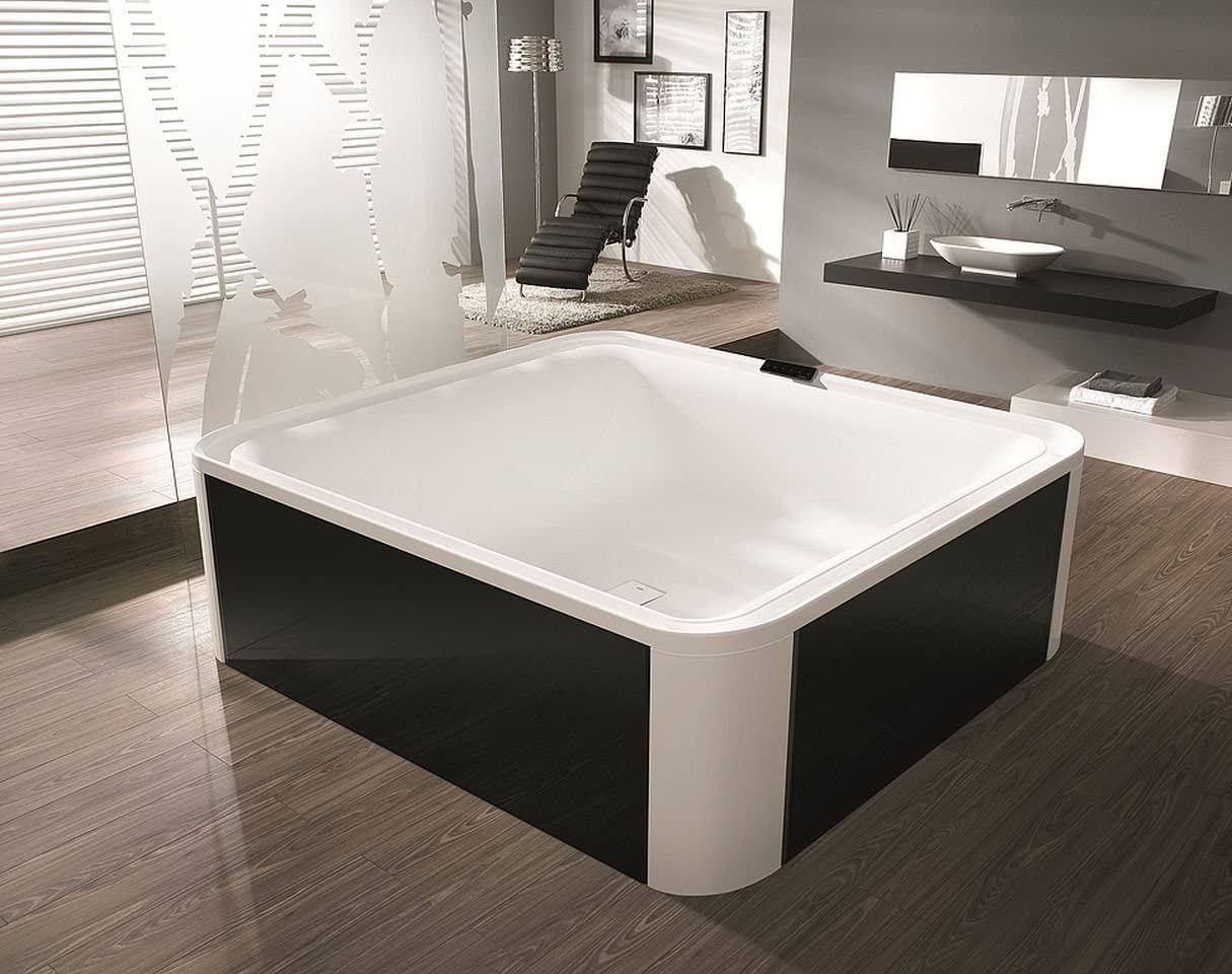 HOESCH Ergo+ Wanna akrylowa kwadratowa wolnostojąca z obudową szklaną w kolorze czarnym z dedykowanym systemem hydromasażu 2075x1950 biały/czarny 6444S.010305552