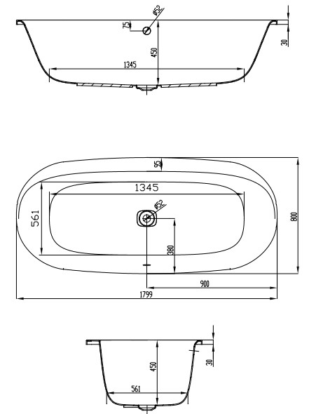HOESCH iSensi Wanna akrylowa owalna do zabudowy z systemem wodno-powietrznym hydromasażu Reviva II 1800x800 biała 3837E