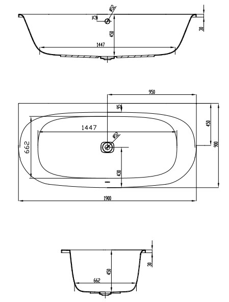 HOESCH iSensi Wanna akrylowa przyścienna do zabudowy z systemem wodno-powietrznym hydromasażu Reviva II 1900x900 biała 3840E