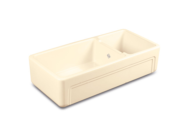 Shaws Egerton Zlew dwukomorowy z obniżoną ścianką działową 99,7x47 cm Biszkoptowy EDF9917PN