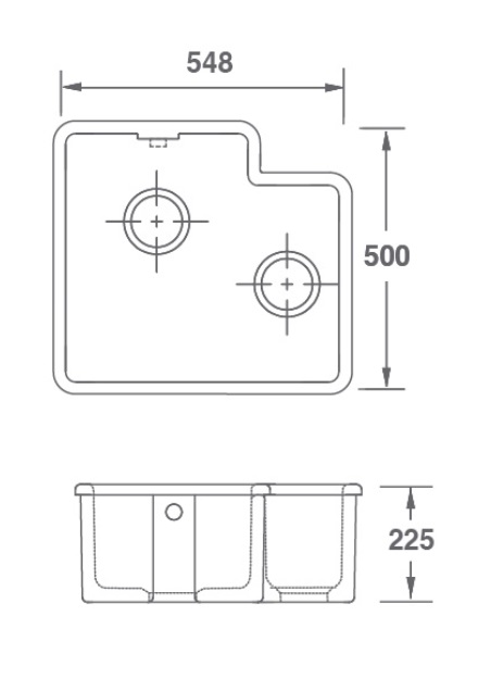 Zlew dwukomorowy do montażu pod blatem bądź z wywiniętym kołnierzem na blacie.
