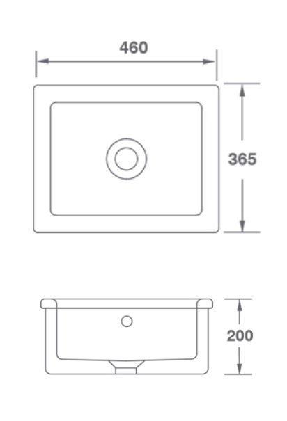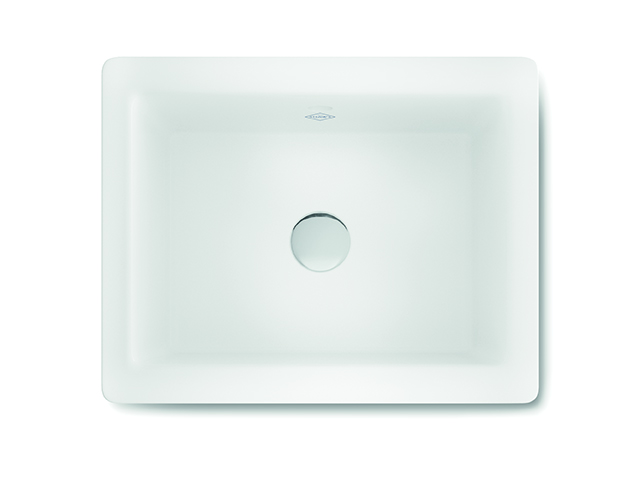 Do montażu pod blatem lub na blacie z wywiniętym kołnierzem, umieszczony centralnie otwór odpływowy.