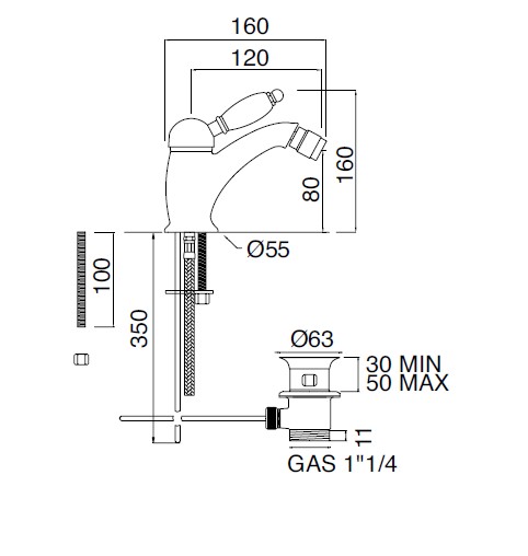 Zestaw bidetowy z mieszaczem podtynkowym, przyłączem kątowym z uchwytem, zaworem 1/2”, mosiężną słuchawką „shut-off” oraz wężem natryskowym 1200 mm.