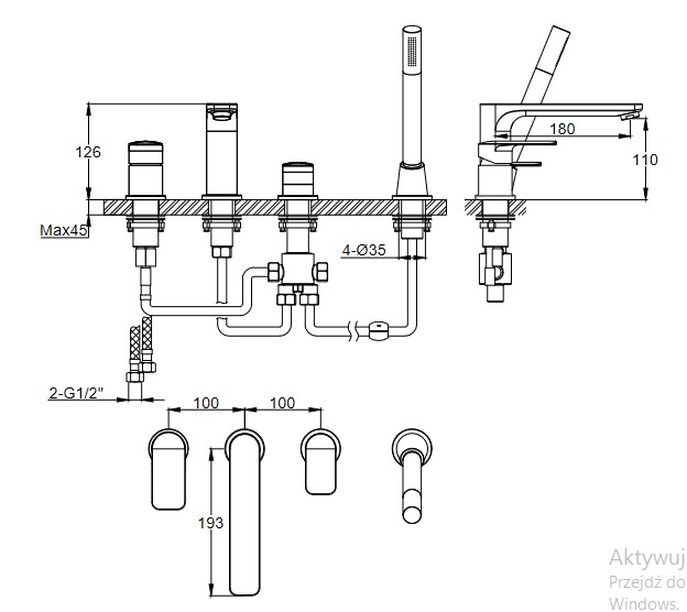 KOHLMAN Texen Bateria wannowa 4-otworowa chrom QB244T