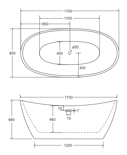 Cena dotyczy wanny z syfonem i przelewem w kolorze chrom