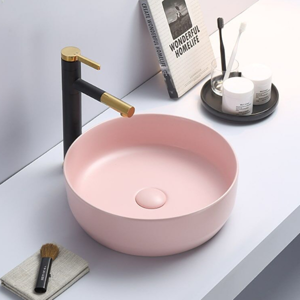 Galatea Design Bulat Umywalka stawiana na blat z korkiem 39x12 cm Pink Matt/Różowy mat GD112DTMP