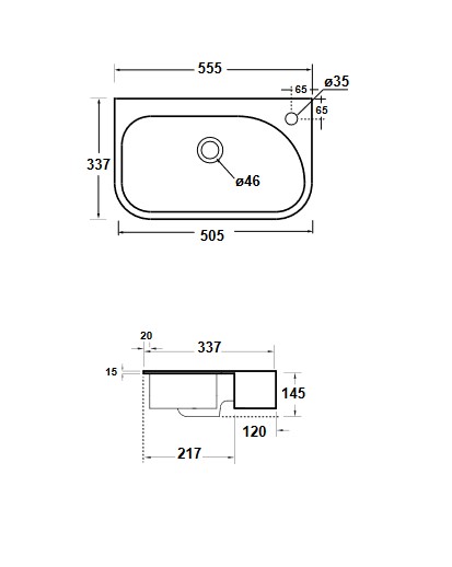 Umywalka wpuszczana w blat do połowy z otworem na baterię