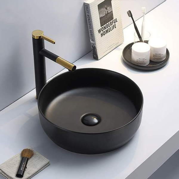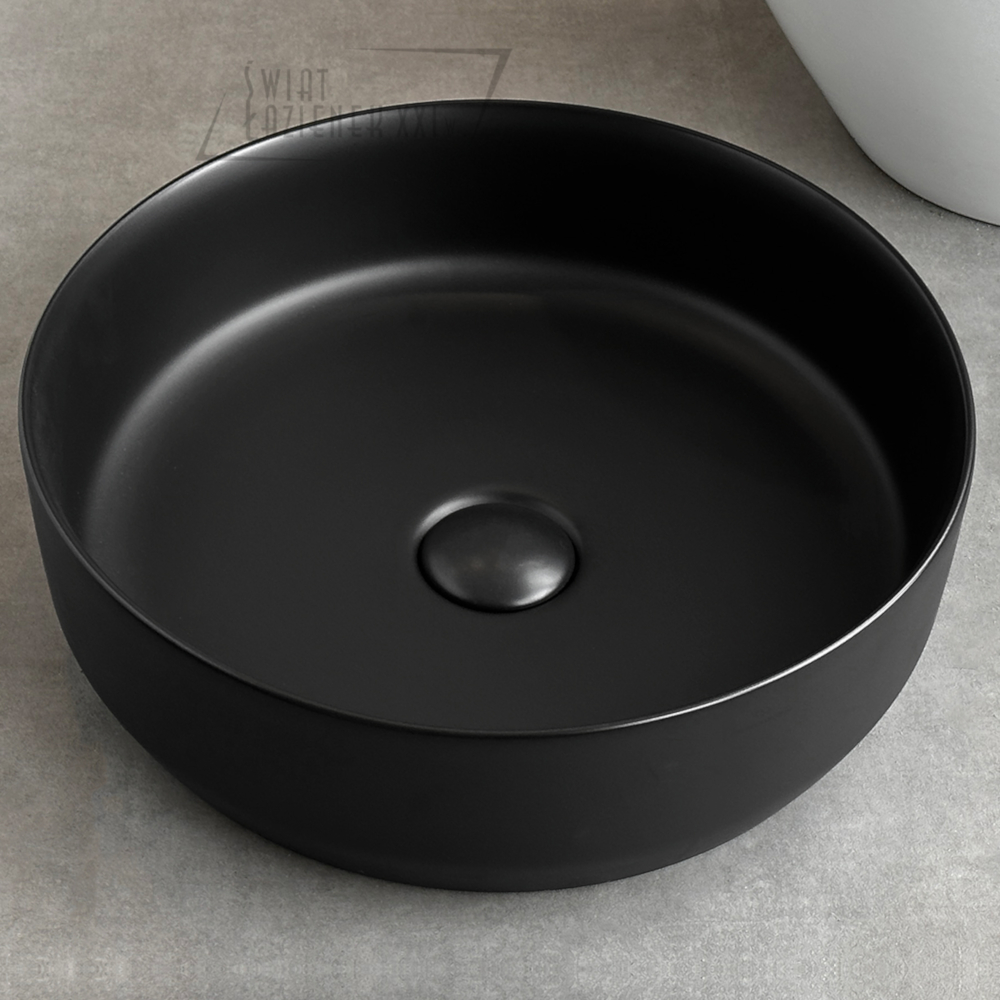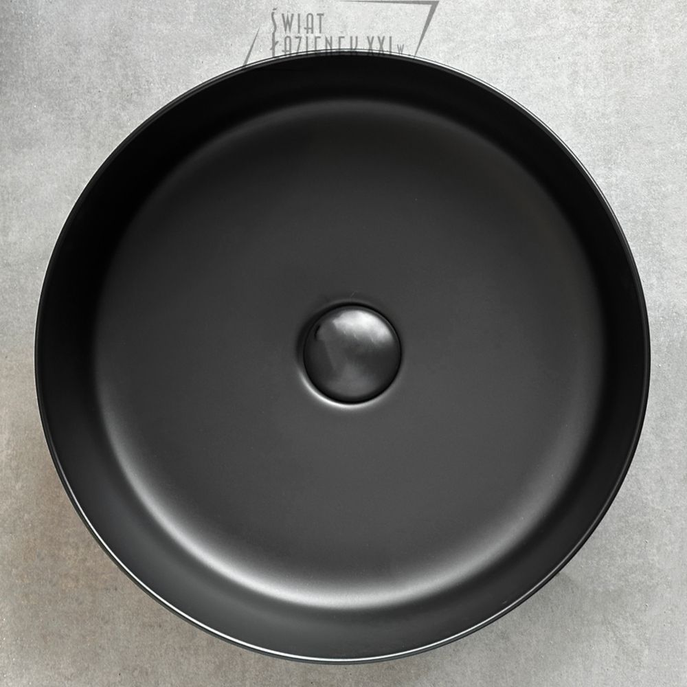 Galatea Design Bulat Umywalka stawiana na blat ∅39 cm z korkiem klik-klak Black matt/Czarny mat GD112DTMB
