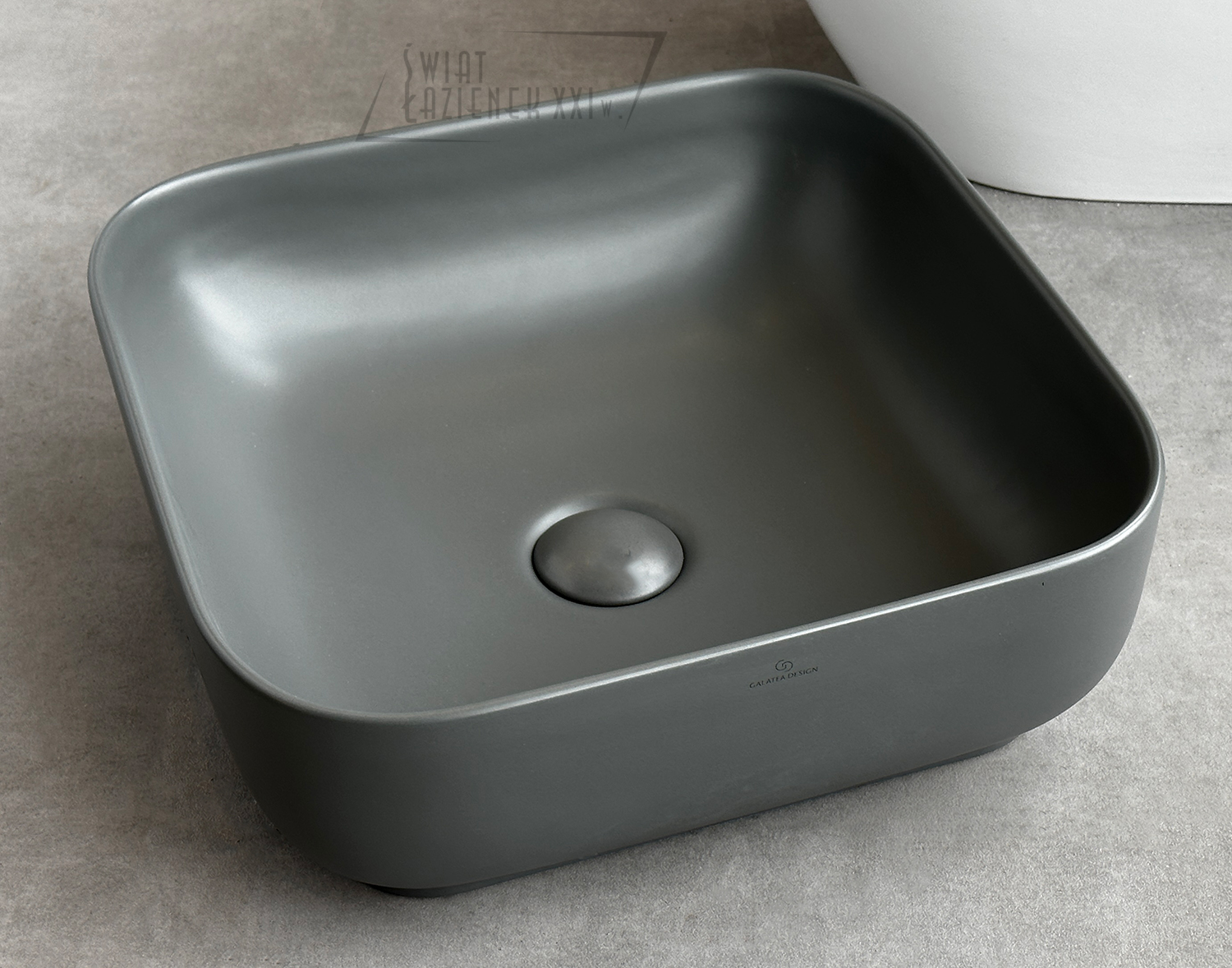 Galatea Design Empat Umywalka stawiana na blat 38,5x38,5 cm z korkiem klik-klak Dark Grey matt/Ciemny szary mat GD78110TMDH TRANSPORT GRATIS!! W MAGAZYNIE!!