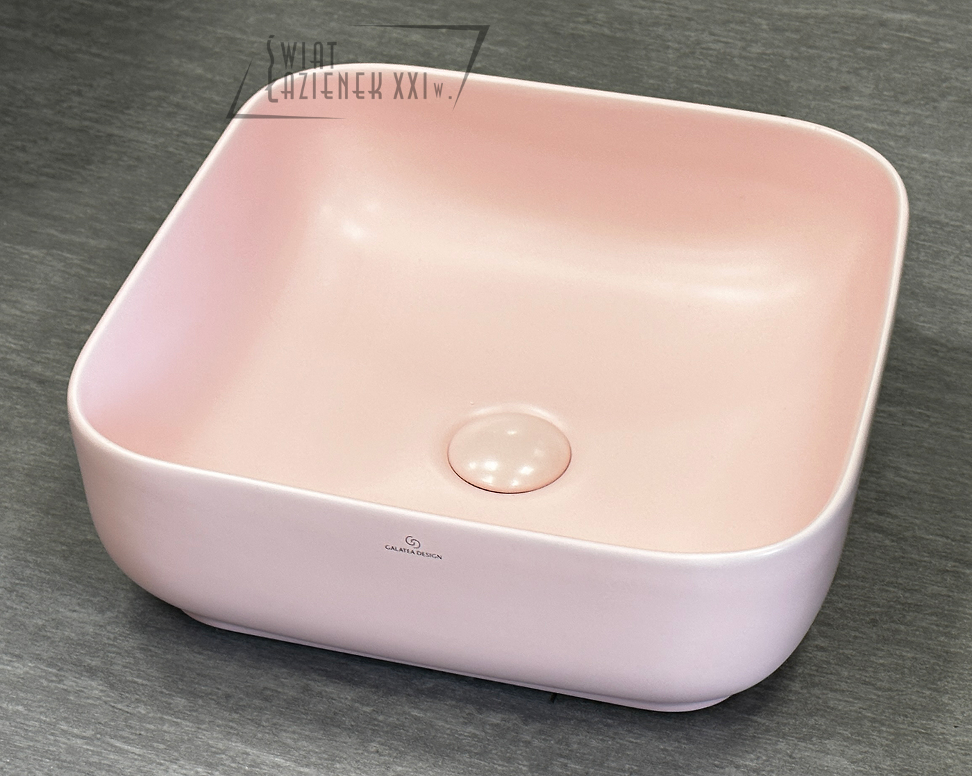 Galatea Design Empat Umywalka stawiana na blat 38,5x38,5 cm z korkiem klik-klak Pink matt/Różowy mat GD78110TMP TRANSPORT GRATIS!! W MAGAZYNIE!!