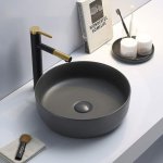 Galatea Design Bulat Umywalka stawiana na blat ∅39 cm z korkiem klik-klak Dark Grey matt/Ciemny szary mat GD112DTMDH