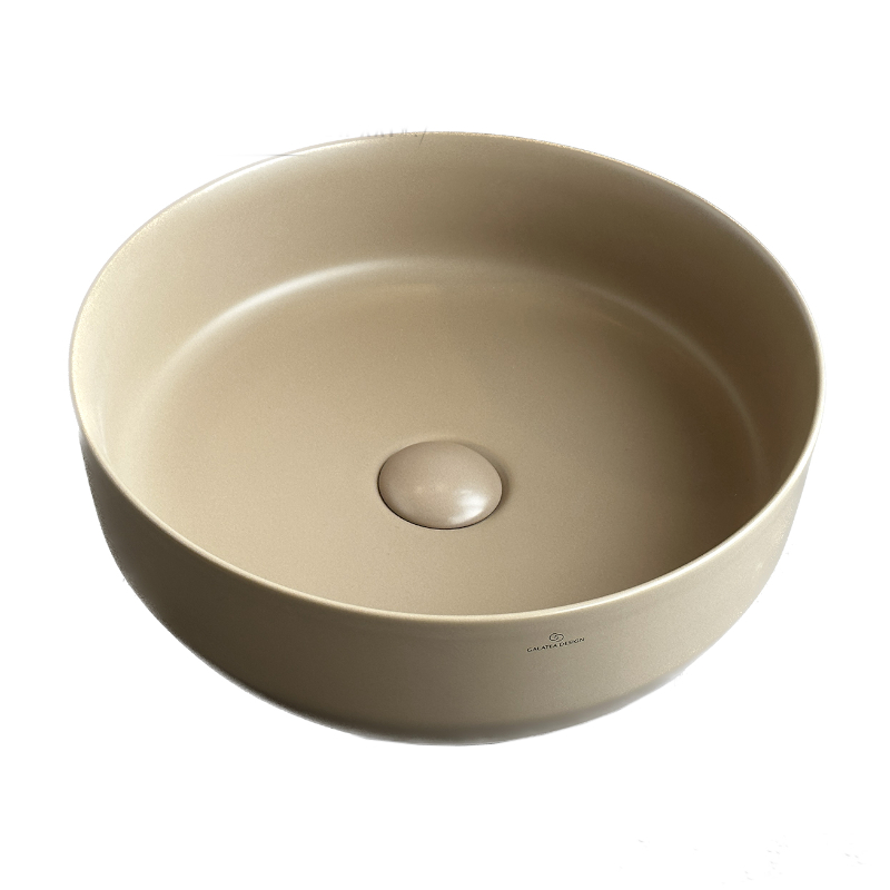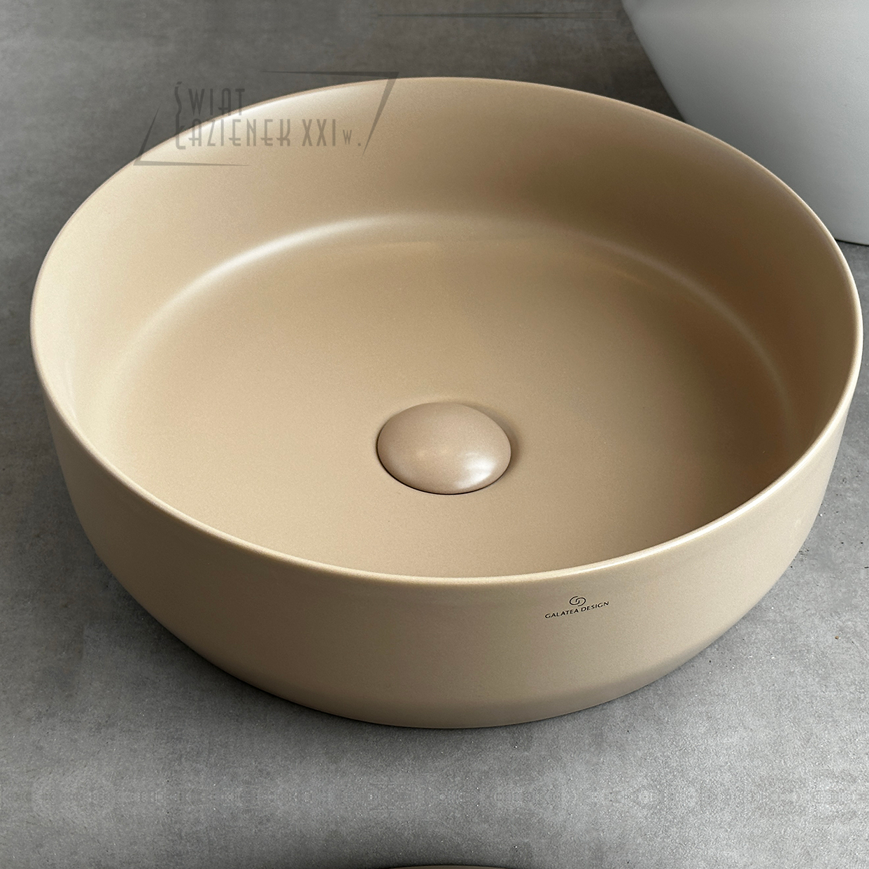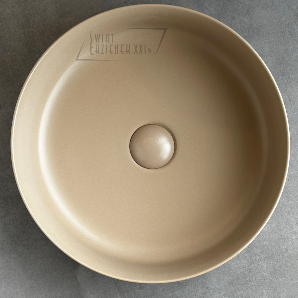 Galatea Design Bulat Umywalka stawiana na blat ∅39 cm z korkiem klik-klak Cappuccino matt/Beżowy mat GD112DTMC