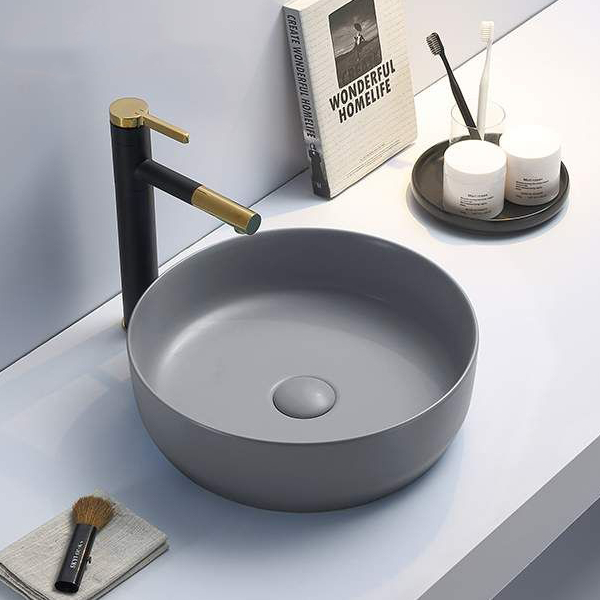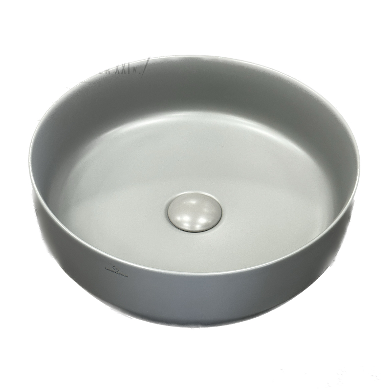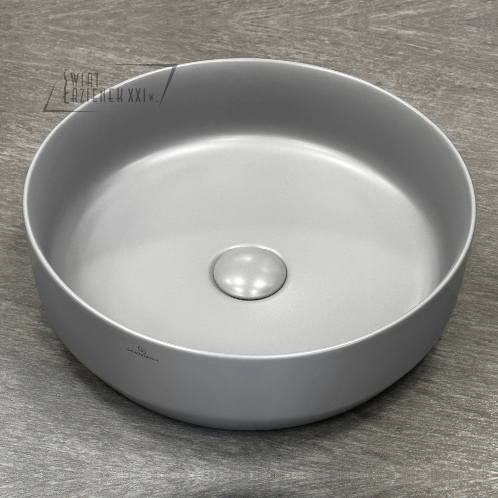 Galatea Design Bulat Umywalka stawiana na blat ∅39 cm z korkiem klik-klak Cement Grey matt/Jasny szary mat GD112DTMH