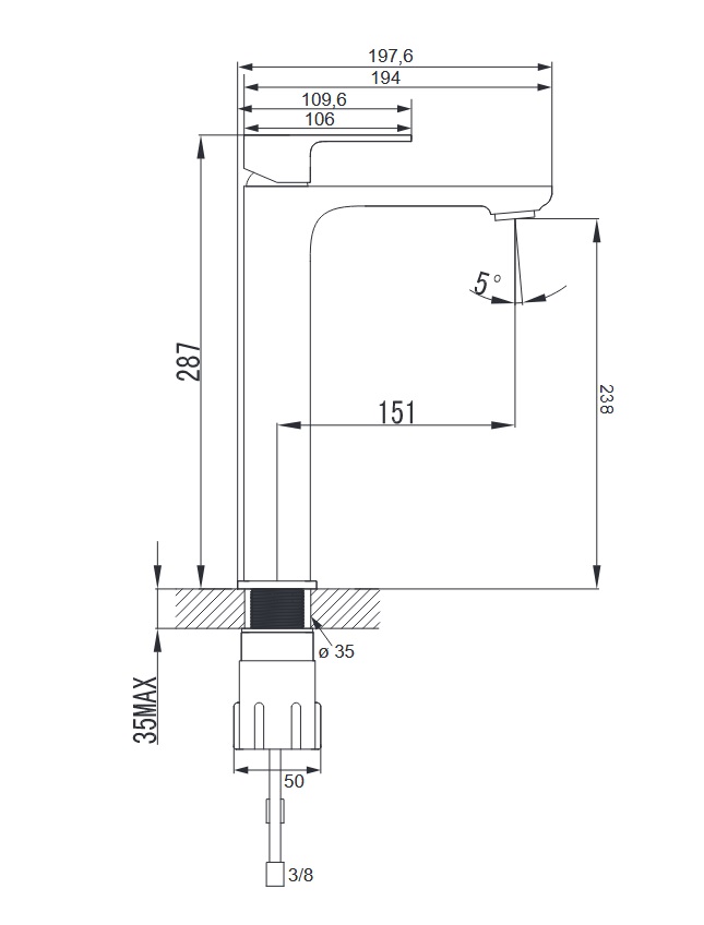 Omnires Apure Bateria umywalkowa jednootworowa wysoka bez korka Chrom AP2212CR
