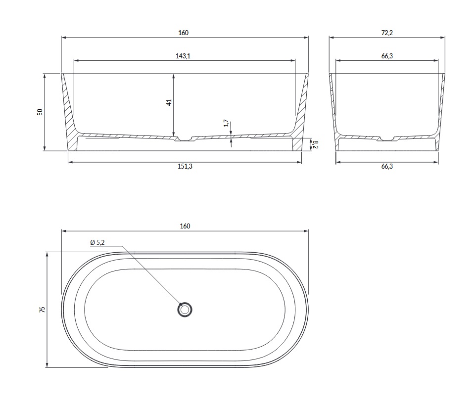 Omnires Ovo M+ Wanna wolnostojąca 160x75 cm Ash grey OVOWWAG