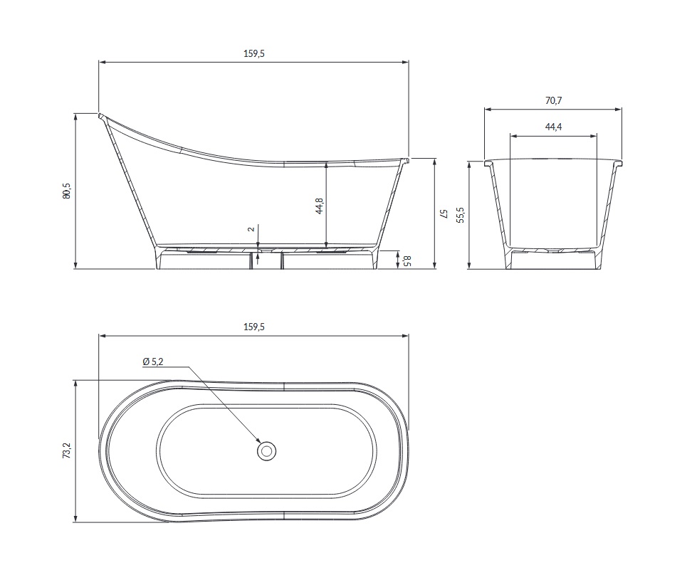 Cena dotyczy wanny wolnostojącej z syfonem i korkiem.