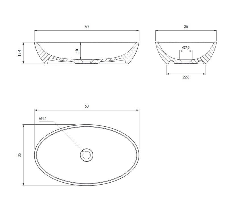 Omnires Siena M+ Umywalka nablatowa 60x35 cm Biały połysk SIENALUNBP