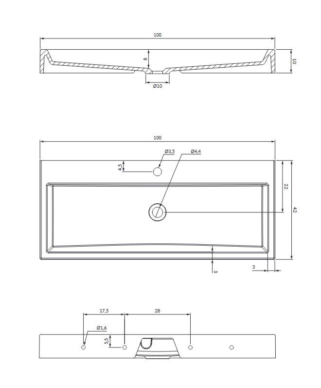 Omnires Thasos M+ Umywalka nablatowa/wisząca 100x42 cm Biały połysk THASOS1000BP