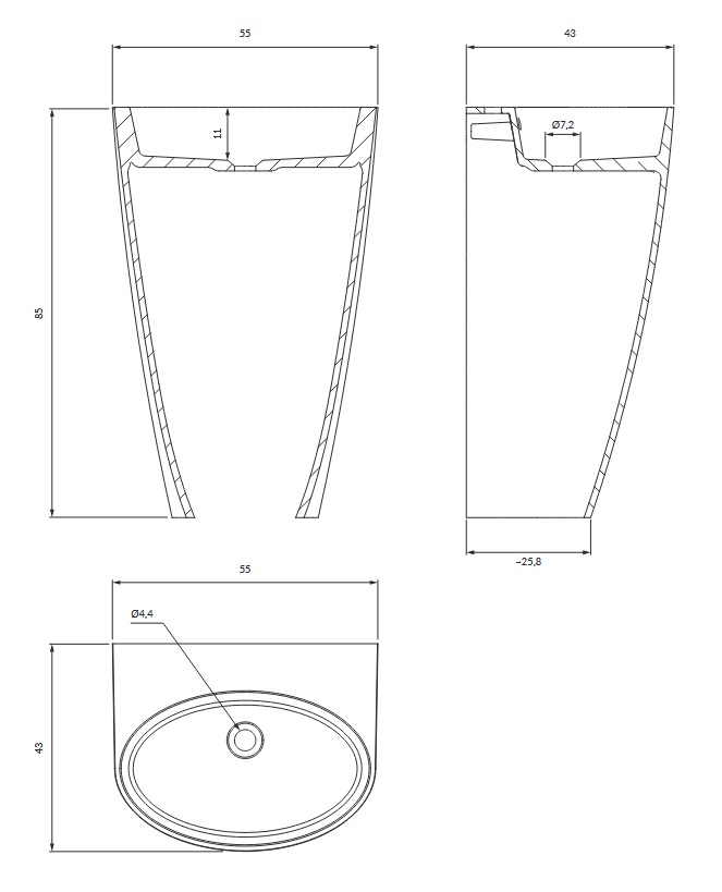 Omnires Siena M+ Umywalka wolnostojąca 55x43 cm Biały/Czarny połysk SIENAUWBOBCP