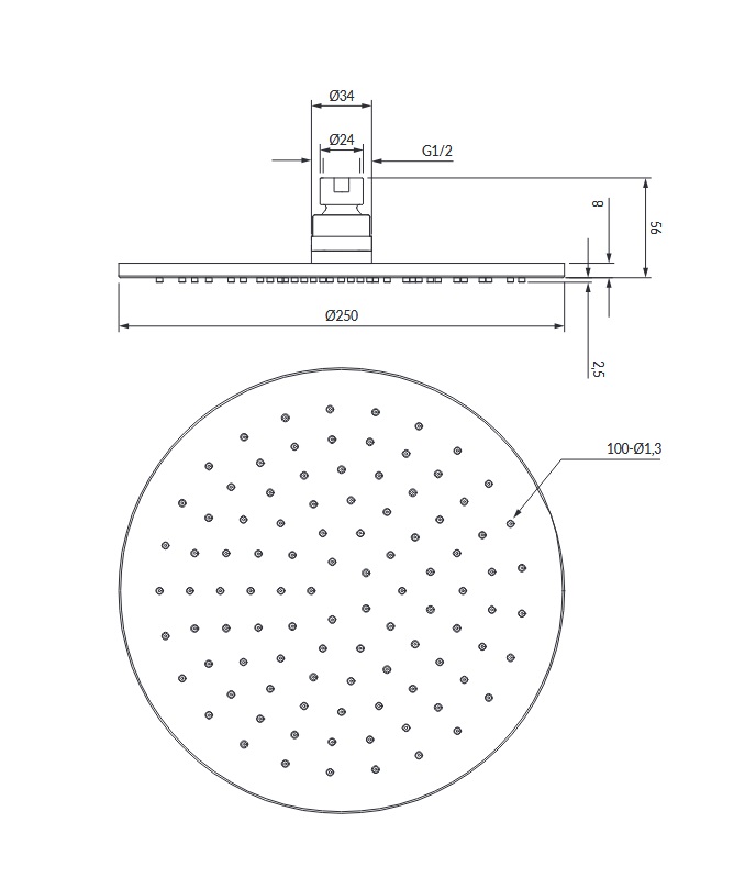 Omnires Contour Deszczownica Ø 250 mm Chrom WG125CR