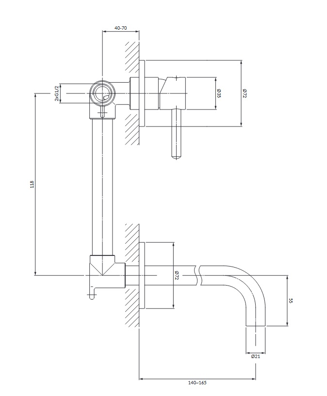 Bateria umywalkowa podtynkowa pionowa