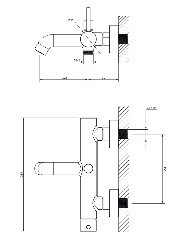 Omnires Y Bateria wannowa ścienna z zestawem prysznicowym Czarny Y1231BL