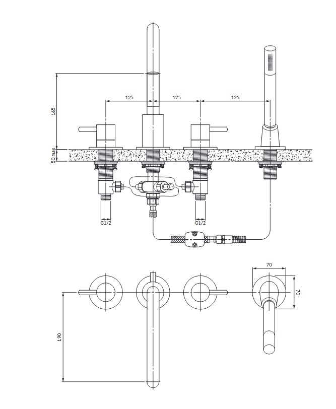 Omnires Y Bateria wannowa 4-otworowa Złoty szczotkowany Y1232GLB