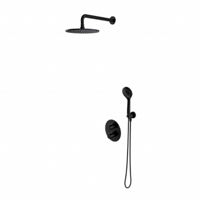 Omnires Y Zestaw prysznicowy termostatyczny podtynkowy z deszczownicą Ø 250 mm i słuchawką prysznicową Czarny SYSYT05BL