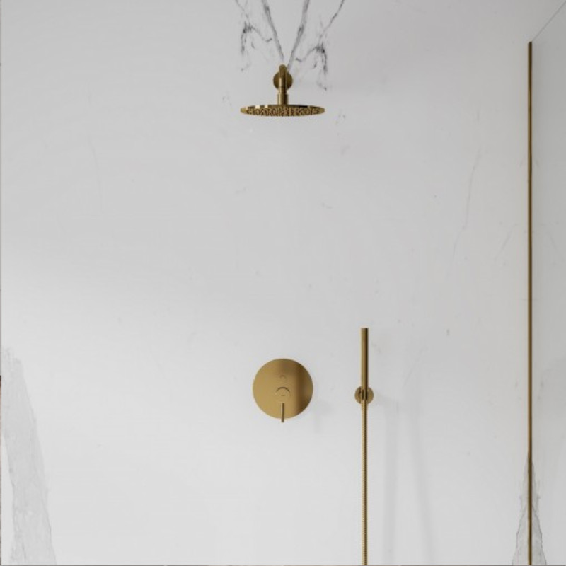 Omnires Y Zestaw prysznicowy podtynkowy z deszczownicą Ø 250 mm i słuchawką prysznicową Złoty SYSY19GL