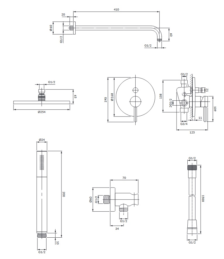 Omnires Y Zestaw prysznicowy podtynkowy z deszczownicą Ø 250 mm i słuchawką prysznicową Chrom SYSY22XCR