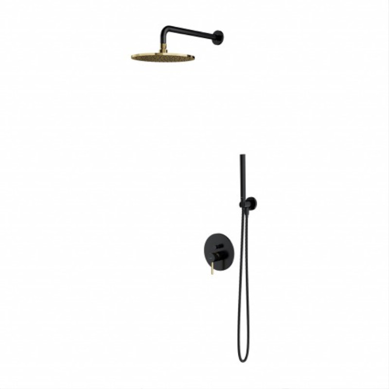 Omnires Y Zestaw prysznicowy podtynkowy z deszczownicą Ø 250 mm i słuchawką prysznicową Czarny/Złoty SYSY18BLGL