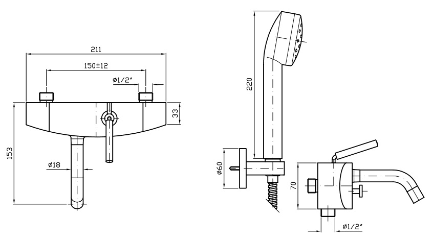 Jednouchwytowa bateria wannowo-natryskowa naścienna z przełącznikiem, perlator, zestaw natryskowy.