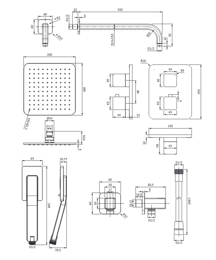 Omnires Parma Zestaw prysznicowy termostatyczny podtynkowy z deszczownicą 200x200 mm i słuchawką prysznicową Czarny SYSPM11BL