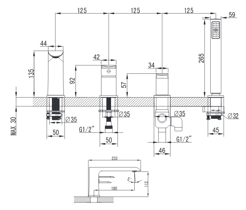 Omnires Sacramento Bateria wannowa 4-otworowa Czarny SC2332BL