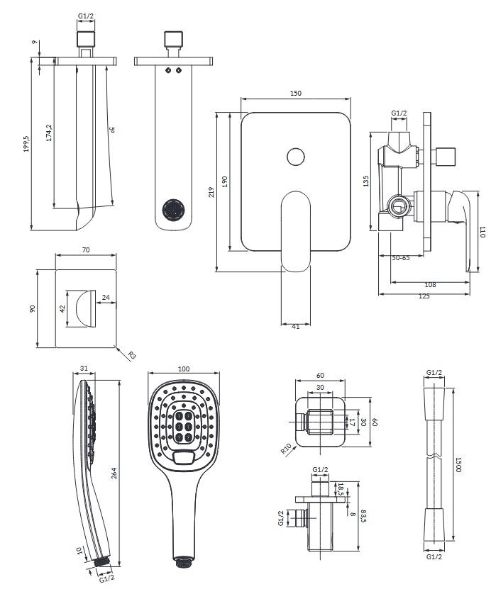 słuchawki prysznicowej 3-funkcyjnej rodzaje strumienia: deszcz, masaż, mieszany