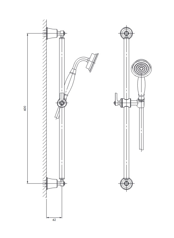 Długość od ściany: 62 mm