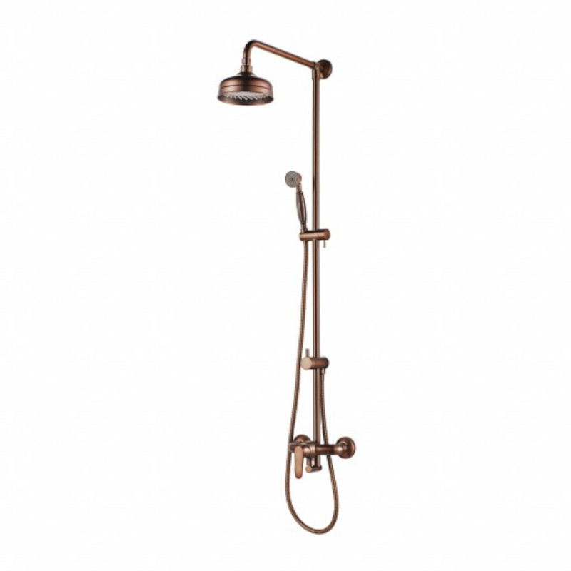 Omnires Art Deco Zestaw prysznicowy ścienny z deszczownicą Ø 155 mm i słuchawką prysznicową na drążku Miedź antyczna AD5144ORB