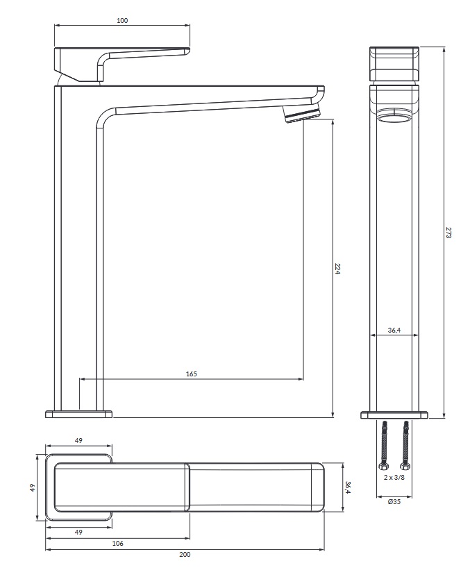 Bateria umywalkowa jednootworowa
