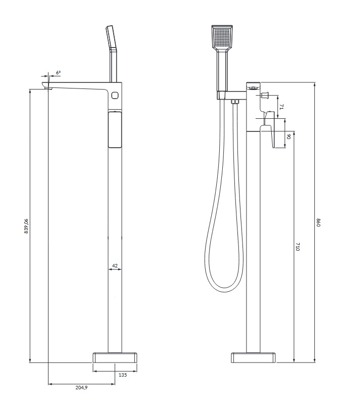 Wysięg wylewki: 205 mm