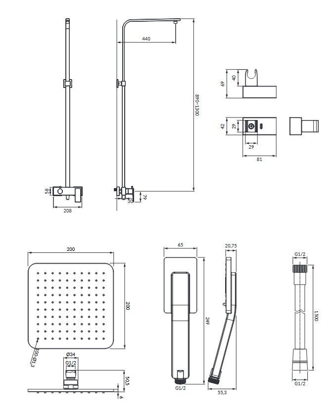 Omnires Parma Zestaw prysznicowy ścienny z deszczownicą 200x200 mm i słuchawką prysznicową Chrom PM7444CR