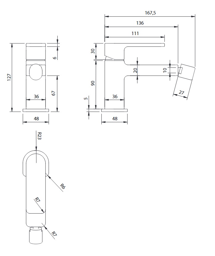 Omnires Baretti Bateria bidetowa jednootworowa Chrom BA7820CR