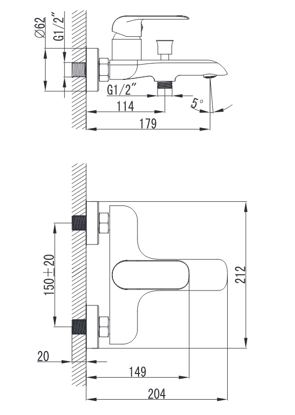 Bateria wannowo-prysznicowa ścienna