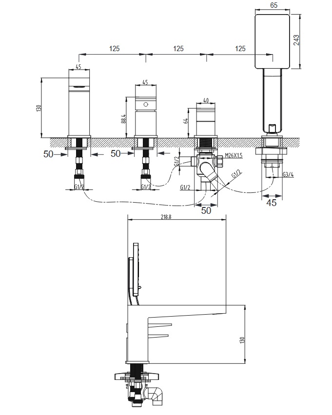Omnires Fresh Bateria wannowa 4-otworowa Chrom FR7132CR