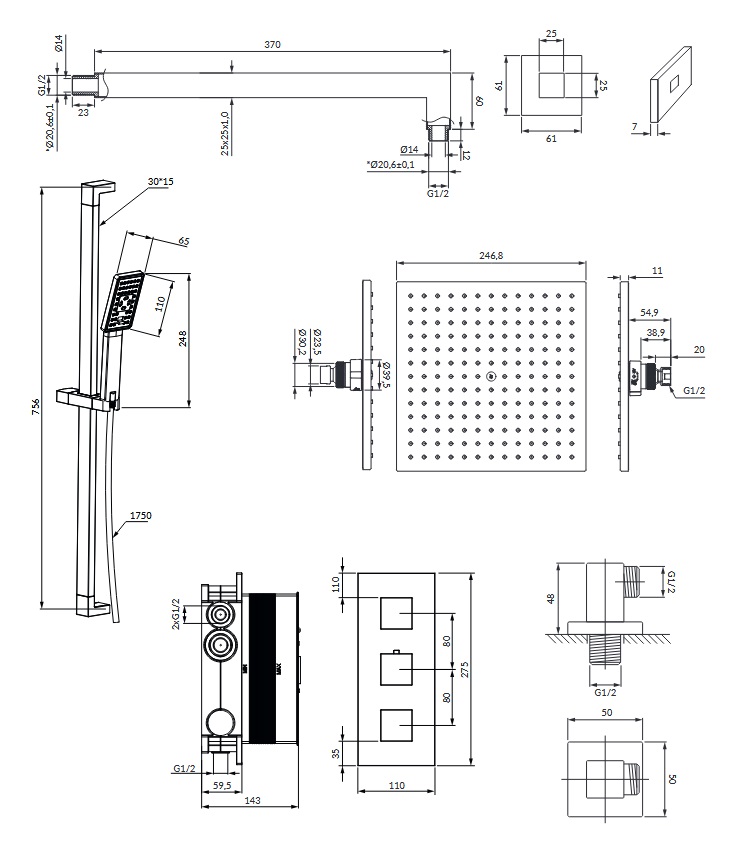 Omnires Fresh Zestaw prysznicowy podtynkowy z deszczownicą 250x250 mm i słuchawką prysznicową Chrom SYSFR12XCR