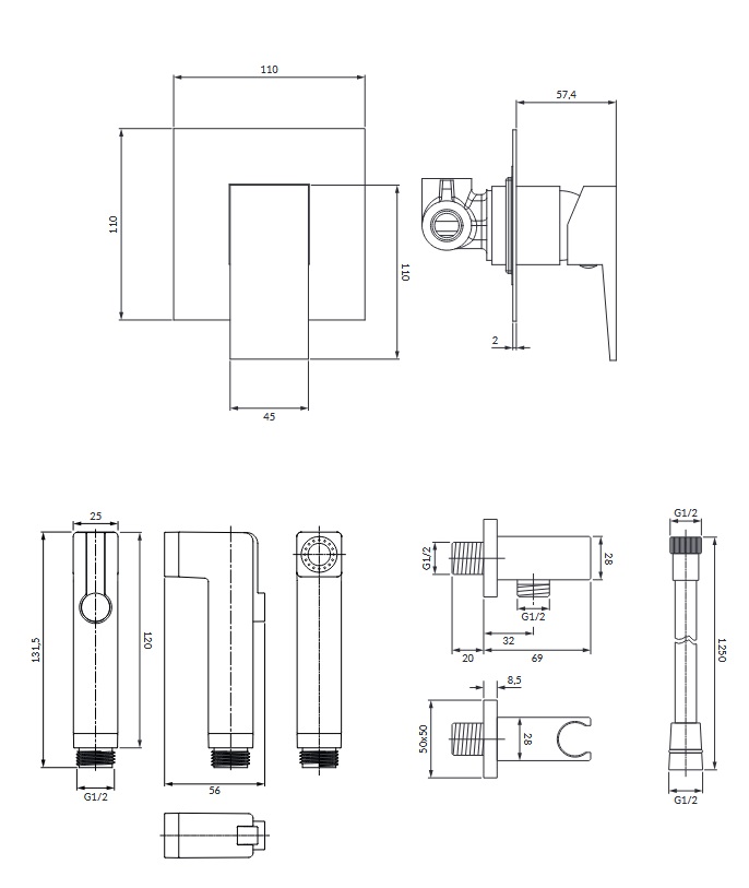 Bateria bidetowa podtynkowa (element natynkowy)