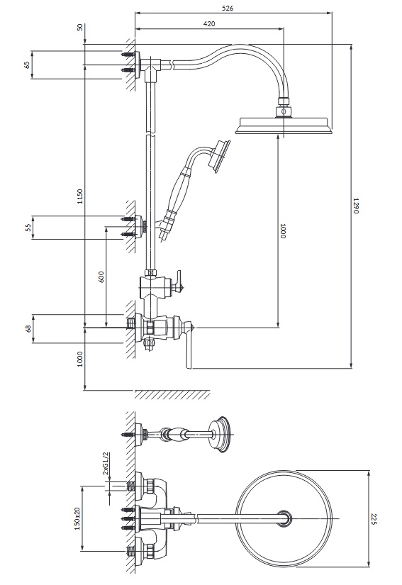 uchwyt punktowy ze słuchawką prysznicową 1-funkcyjną