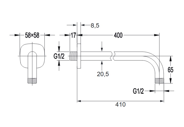 Omnires Hudson Ramię prysznicowe ścienne Chrom RA05CR