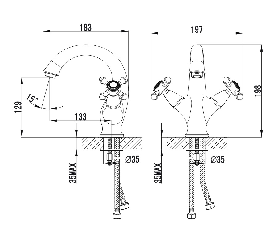 Omnires Retro Bateria umywalkowa bez korka Chrom RE7210CR